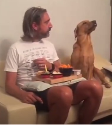Crafty Dog Watches Owner Eat Without Him Noticing